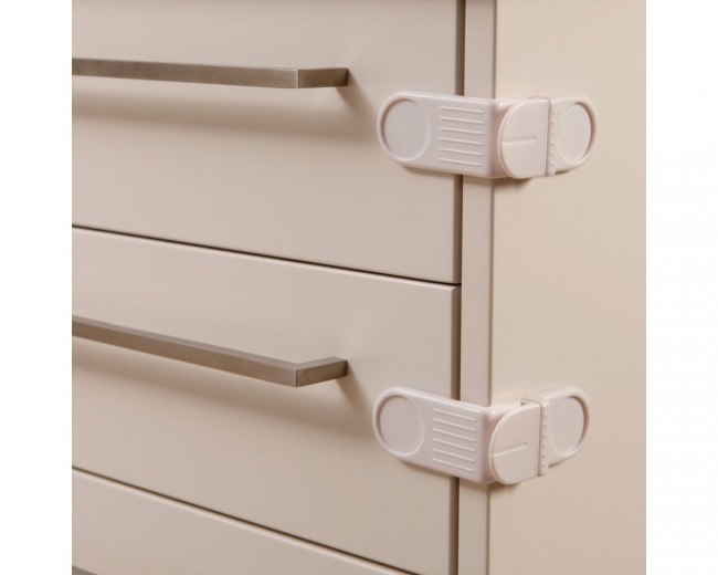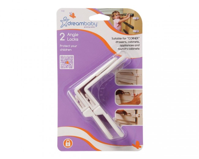 Dreambaby® Angle Locks help safeguard children from potential household hazards and keep nasties out of reach. Suitable for corner drawers, cabinets, appliances and laundry rooms. It will lock in place automatically when the drawer is shut.