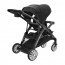 Treaded rubber tires, full suspension, and front swivels help maintain a smooth ride for both passengers in every configuration. One-touch brakes keep the stroller in place when parked. A padded push-handle, large storage basket with front/rear access, and a parent tray with two cup holders and zippered storage provide added convenience for mom or dad.